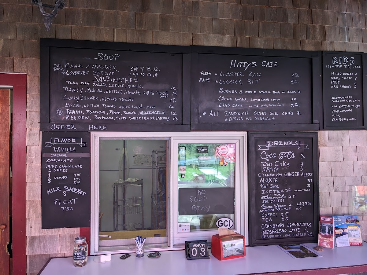 Quench your thirst with house-made beverages, from sweet ice tea to the tangy cranberry lemonade. With quick service and a cozy outdoor seating area—complimented by picturesque views—Hitty's Cafe provides both efficiency and charm for a memorable dining experience.